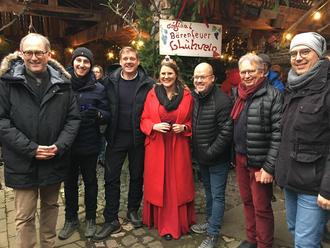 Schon im Vorfeld hatten sich die Veranstalter alle Mühe gegeben, den Markt zu einem Erfolg werden zu lassen. Für die amtierende Recher Weinkönigin Katja Hermann war es „ein traumhaftschönes Wochenende“ Die charmante Regentin des Weinorters bedankte sich denn auch bei allen, die diesen Lucia Markt möglich gemacht hatten. „Es war sehr schön, dass wir trotz der besonderen Umstände unseren Lucia Markt wieder feiern durften.“ Wie sie erzählte, ging sie nach der Eröffnung des Marktes am Samstag mit dem neuen Ortsbürgermeister Ben Vrijdaghs durch den Ort und kam so mit vielen Besucher ins Gespräch. Neben den vielen geöffneten Winzerhöfen, in denen Glühwein und leckere Snacks verkauft wurden, hatten die Verantwortlichen ein ansprechendes Kulturprogramm auf die Beine gestellt. So zogen am Samstag Musikkapellen durch den Ort und gaben ihr musikalisches Können zum Besten. Dabei waren die Eifeldombläser aus Houverath und in einer bemerkenswerten Premiere auch das Blasorchester Laubuseschbach. Laubuseschbach ist ein Ortsteil der Gemeinde Weilmünster im mittelhessischen Landkreis Limburg-Weilburg. Aus diesem Landkreis kam weiterer, „hoher Besuch“ nach Rech: Landrat Michael Köberle, der Weilmünsterer Bürgermeister Mario Koschel und der Erste Kreisbeigeordnete Jörg Sauer. Der Landkreis in Hessen hatte nach der Flut insbesondere die Ortsgemeinde Rech in vielfacher Hinsicht unterstützt.