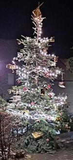 Der Dorfweihnachtsbaum in Freisheim erstrahlt in festlichem Glanz