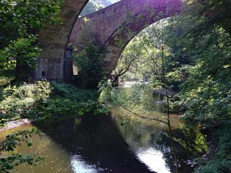 ALTENAHR. (kan.) Die bemerkenswerte Brücke der Ahrtalbahn in Altenahr, unmittelbar vor dem Tunnel, wird im Zuge des Wiederaufbaus nicht abgerissen sondern den neuen Gegebenheiten „angepasst“ oder modernisiert. Fachleute sagen dazu „die Brücke wird ertüchtigt“ und so für die künftige Nutzung modernisiert. Jüngst hat die beteiligte Baufirma am Fuße des Brückenbauwerks einen provisorischen Weg gebaut, um an den Brückenpfeilern arbeiten zu können.