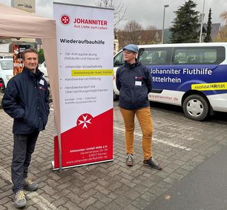Arnd Eifler und Katja Daub vom Johanniter Fluthilfe Team beraten und unterstützen bei allen Fragen rund um den Wiederaufbau.