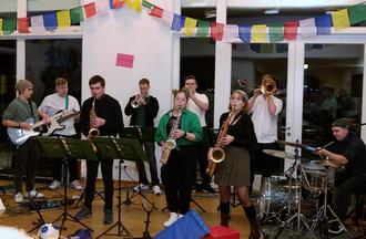 KESSELING.OC. Sportlich ging es zu beim Neujahrsempfang 2023 des Pro Büro für Jugendarbeit der Verbandsgemeinde Altenahr. Dominik Gieler, Bürgermeister, und Werner Söller, Jugendpfleger, hatten für Donnerstag, 26. Januar, in das gemütliche Bürgerhaus Kesseling geladen. Die Verbandsgemeinde bedankt sich mit dem Neujahrsempfang traditionell für das Engagement in der Kinder-, Jugend- und Familienarbeit bei allen in diesem Bereich aktiv Tätigen. Bereits das diesjährige Motto "Beweg Dich!" deutete auf sportliche Betätigung hin, ebenso die kreative Einladung mit einem Buchstabenrätsel rund um den Begriff "Bewegung". So staunten die Gäste nicht schlecht, was das engagierte Team rund um Söller zur Gestaltung des Abends vorbereitet hatte. Bereits beim Eintritt waren unterschiedliche sportliche Übungen (z. B. Kniebeugen) zu absolvieren und Hindernisse zu bewältigen. Jeder Besucher wurde gefragt, von wo er angereist ist. Insgesamt kamen im Laufe des Abends unglaubliche 1.400 km Anreise zusammen – in etwa genau die Entfernung zur ungarischen Partnergemeinde Martely! Wie immer wurde der Empfang durch das Team des Jugendbüros abwechslungsreich gestaltet – so erfuhren die Gäste beispielsweise in einem kurzweiligen Wortbeitrag von Gaby und Lena, welche Qualifikationen für ein Ehrenamt im Jugendbüro gefragt sind. Das junge „Chaos Orchester“ aus Weibern sorgte für sensationell gute moderne karnevalistische Blechblasmusik. Gemeinsam mit Angelika Furth, Kulturbüro Mittelahr e. V., hatten die Jugendlichen ein köstliches veganes/vegetarisches Buffet gezaubert, das den Gästen das Wasser im Mund zusammenlaufen ließ. Am Ende waren sich alle einig: ein rundum gelungener Abend, für den sich die Jugendlichen einiges hatten einfallen lassen.