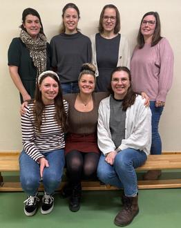 Hinten, von links: Elena Linnerz, Isabell Keuler, Anja Müller, Jasmin Zimmermann Vorne, von links: Vanessa Knechtges, Melanie Andree, Sophie Tiemeyer Es fehlen: Stefan Koll und Frank Helms
