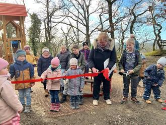 Das obligatorische rote Band hatten Kinder gemeinsam mit der Vorsitzenden Hildegard Bell durchschnitten.