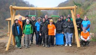 Beatrix Ziegler, Mitarbeiterin der Westenergie, hatte die Förderung bei ihrem Arbeitgeber beantragt. „Ich freue mich sehr, dass wir durch die gute Zusammenarbeit mit dem Förderverein Laach Ahrtal e.V. und vor allem der Patengemeinde Ehlscheid einen Beitrag zum Neuaufbau des Spielplatzes leisten konnten. Es war unglaublich rührend, mit so vielen begeisterten und kompetenten Helfern das Projekt umsetzen zu dürfen“, sagt Ziegler. Die Ortsgemeinde Ehlscheid hatte sich spontan bereit erklärt, rund 20 ehrenamtliche Helfer*innen am Aufbautag nach Laach zu entsenden und somit die handwerkliche Realisierung des „Westenergie aktiv vor Ort“-Projektes ermöglicht.