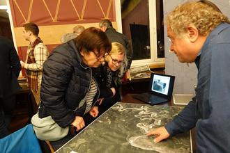 Mittels Plänen, Bildern, Skizzen oder Tabellen erläuterten Fachleute der interessierten Bevölkerung Fragen zum Wiederaufbau von Schiene und Straße.