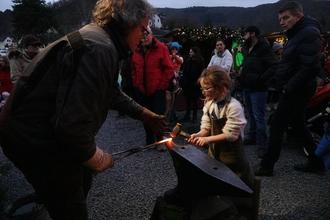 Nickt kleckern, sondern klotzen, war auch das Motto des Rahmenprogramms. Schon zum Start zeigten sich die Weinmajestäten samt Weihnachtsmann als feierndes Trio, verteilten Süßes an die Kita-Kinder, die den Markt mit ihren Gesängen eröffnet hatten. Panflötenklänge wurden von Folkmusik abgelöst, am Sonntag sorgten die Turmbläser für festliche Klänge und immer wieder war das Hämmern eines Schmieds auf dem Amboss zu vernehmen. Hier konnten sich sogar die Kinder unter Anleitung Dekoratives herstellen und dabei einen Einblick in mühsames altes Handwerk kennenlernen. Überhaupt stand der Nachwuchs im Fokus, Krippenrallye oder Workshops mit mittelalterlichen Tänzern sorgten für Kurzweil. Die Sternstunden haben das katastrophale Geschehen aus 2021 auf alle Fälle überlebt.