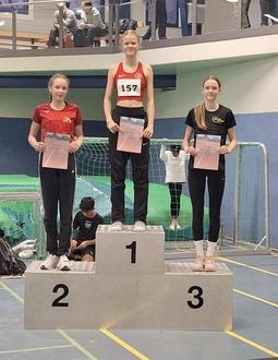 Neben dem Bronzerang mit neuer persönlicher Bestleistung im Hochsprung und dem Erreichen der Quali-Norm für die RPM, verbesserte sich die aus Meckenheim stammende Athletin auch im 60-m-Sprint (pB).