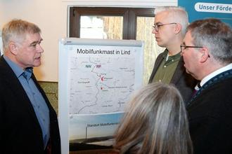 Ortsbürgermeister Werner Zavelberg und Beigeordneter Markus Reuter freuten sich über die Gäste aus Bundes- und Landespolitik sowie der Mobilfunkbranche in Lind. Viele Jahre hat sich der Gemeinderat für die Verbesserung der Mobilfunkversorgung engagiert. Zavelberg ist erfreut, dass das Projekt innerhalb eines Jahres zur Planreife gekommen ist. Mit Plittersdorf sei ein optimaler Standort gefunden. Obliers ist bislang ein weißer Fleck auf der Mobilfunkkarte. Dementsprechend schwierig ist die bisherige Mobilfunkversorgung. „Wer dort telefonieren möchte, muss zuerst den Berg hochgehen. Wir sind froh, dass der weiße Fleck nun verschwindet und sich das Mobilfunknetz in der Gemeinde verbessert.“
