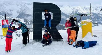 Spaß, Sonne und Skifahren – Die Schüler*innen formen den Are-Schriftzug im Schnee.