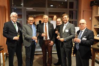 Herzlicher Empfang für Wolfgang Bosbach (3.v.l.) durch (v.l.) Elmar Lersch, Gereon Haumann, Harald Monschau, Detlef Odenkirchen und Dr. Werner Jung.