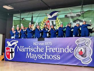 Mit der lange im Vorfeld ausverkauften Sitzung „Op Meeschejer Art“ stand am Samstag der Höhepunkt des Wochenendes vor der Tür. Und so verbrachten die knapp 300 Gäste einen überaus gelungenen Abend. Startschuss gab der Einmarsch des Elferrats der von den „Ahrtalenten“ begleitet wurde, die im Anschluss den Saal einheizten. Besonders stolz blicken die NFM auf ihre eigenen Tanzgruppen, die alle restlos begeisterten. Der Auftritt von Bauchredner Fred van Halen wurde von einem Zwischenfall begleitet: Der Elferrat, der im Vorhinein fleißig mitgetanzt hatte, krachte mit einem lauten Knall von seinen Sitzen. So war die etwas behelfsmäßige Sitzkonstruktion unter ihnen zusammengebrochen, ganz zur Freude und zum Gelächter der Gäste. Für die emotionalen Höhepunkte sorgten im Anschluss zwei personelle Veränderungen: Mit Jürgen Kraus, dem Gründungsmitglied der NFM, verabschiedete sich nach 45 Jahren Amtszeit der Präsident der NFM in den karnevalistischen Ruhestand. Sein Nachfolger Dominik Kalt stellte in seiner Rede die besondere ehrenamtliche Leistung heraus und bedankte sich im Namen der gesamten KG für sein Engagement. Kein Auge trocken blieb auch als Alfons Schmitt sein Amt als Sitzungspräsident nach elf Jahren an seinen Sohn Lewis weitergab. Abgerundet wurde die Sitzung durch Redner Andy Marquart sowie einem erstklassigen Auftritt von „Veedel for 12“. Am Sonntag, 12. Februar, startete um 15.11 Uhr die Kinderkarnevalsfete für alle kleinen Jecken, die erneut für einen vollen Saal und super Stimmung sorgte. Die Vorfreude auf das närrische Wochenende 2024 ist bereits jetzt riesengroß. Bis dahin heißt es in gewohnter Manier: „Dreimol vun Hätze - Meeschech Alaaf“!
