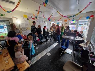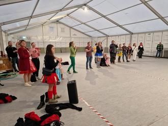 ALTENAHR. Nach der Rathausstürmung am Roßberg bereiteten einige Teammitglieder ein neues Angebot für die Ehrenamtler vor. Erstmalig veranstaltete das Jugendbüro eine After-Work-Party, mit dem Ziel gemeinsam Spaß zu haben und erneut Gelegenheit für ein miteinander zu finden. Ehrenamt erlebt und erfährt sich durch gemeinsames Tun und Begegnung – immer wieder. So lud das Jugendbüroteam am Karnevalsfreitag, den Freitag, 17. Februar in den karnevalistisch hergerichteten Jugendbürocontainer ein. Über 20 Personen kamen und hatten bei Pizzabrötchen und Karaoke eine lustige Auszeit. Höhepunkt der Veranstaltung war der Besuch der Damenriege aus Altenahr, die die ganze Schar ins Bewegungszelt zur Darbietung einlud.