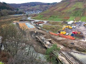 MARIENTHAL. (kan.) Der Wiederaufbau der Trasse der Ahrtalbahn geht voran und lässt sich an diesen Bildern sehr schön ablesen.