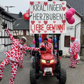 Mit Herz und Humor durch Krälingen - Die Krälinger Herzbuben bringen Valentinsgrüße auf die Straße.