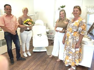 Die Vorsitzende des Marktplatz Region Horhausen e.V., Rita Dominack-Rumpf, und der Ortsbürgermeister von Horhausen, Thomas Schmidt, überbrachten die Glückwünsche der regionalen Wirtschaft und der Ortsgemeinde. „Wir legen großen Wert auf moderne und nachhaltige Produkte für unsere Anwendungen und bleiben durch Fortbildungen immer auf dem neuesten Stand“, erklärten die beiden jungen Damen den beiden Besuchern.