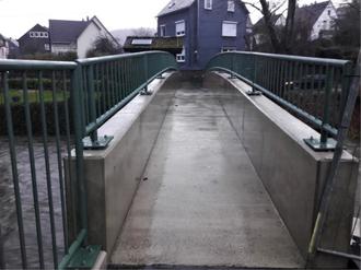 Im Dezember 2020 hat der Gemeinderat den Auftrag für den Bau einer neuen Brücke über die Heller von der Geishardtstraße zur Hauptstraße, die sogenannte Rhenag-Brücke, vergeben. Die alte Brücke war marode, eine Sanierung wirtschaftlich nicht darstellbar. Gleichzeitig musste das neue Brückenbauwerk höheren Anforderungen bezüglich des Hochwasserschutzes genügen. Ältere Einwohner können sich noch an das Jahrhunderthochwasser 1984 erinnern, als sich das Wasser der hochwasserführenden Heller an der Brücke staute. Die neue Brücke musste also einen größeren Abstand zum Wasserspiegel der Heller haben. Das war nicht ganz einfach, war es doch nicht möglich, die Brücke einfach höher einzubauen, da es sonst zu Problemen im Einmündungsbereich zur Hauptstraße gekommen wäre. Die Lösung waren zwei konstruktive Maßnahmen: zum einen ist das Brückenteil gewölbt, wodurch der Abstand zum Wasserspiegel der Heller in der Brückenmitte ca. 30cm größer ist als links und rechts am Rand. Zum anderen befindet sich die tragende Konstruktion nicht mehr, wie bei dem alten Bauwerk, unter dem Brückenteil, sondern in den beiden Seitenwänden. Dadurch erfüllt die Brücke jetzt die Anforderungen an das sogenannte „100-jährige Hochwasser“. Die alte Brücke wurde im September abgebaut, gleichzeitig das neue Brückenbauteil eingebaut. Bei den restlichen Bauarbeiten gab es anschließend leider jedoch Verzögerungen. Personal- und Materialengpässe verhinderten den Abschluss der Arbeiten. Letztlich haben die bauausführenden Firmen trotzdem ihre Zusage eingehalten, dass die Brücke noch in 2022 wieder für den Verkehr freigegeben werden wird. Drei Tage vor Heiligabend war es dann soweit: die Absperrgitter konnten abgebaut und die Brücke wieder für Fußgänger und Radfahrer freigegeben werden.