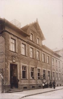 Das "Kaiserliche Postamt" in der Poststraße, jetzt Decizer Straße. Als die Post an die Heller zog, übernahm die Sparkasse den Standort mit einem neuen Gebäude, heute befindet sich hier die Ökum. Bücherei. heute
