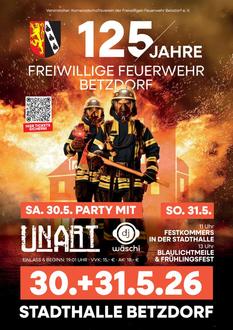 Die Freiwillige Feuerwehr Betzdorf feiert in diesem Jahr ein ganz besonderes Jubiläum: 125 Jahre Einsatz für die Sicherheit der Bürgerinnen und Bürger. Aus diesem Anlass lädt die Feuerwehr am 30. und 31.05.2026 zu einem großen Fest in und um die Stadthalle Betzdorf ein. Zwei Tage lang stehen Gemeinschaft, Dankbarkeit und natürlich gute Stimmung im Mittelpunkt.