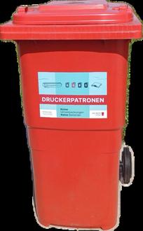 Deshalb wurde mit der „Roten Tonne“ ein Sammelsystem geschaffen, dass in Kooperation mit den Abfallwirtschaftsbetrieben eine denkbar einfache Möglichkeit bietet, die Druckerpatronen der Bürgerinnen und Bürger zu sammeln und anschließend sinnvoll zu verwerten.