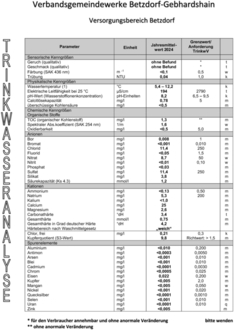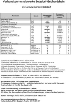 Trinkwasseranalyse 2025 Versorgungsbereich Betzdorf