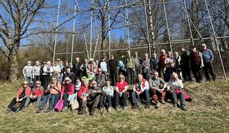 Auf naturbelassenen Wegen marschierte man sodann durch den Wald mit ständiger Begleitung der talseitig gelegenen Siegauen. An der Strecke passierte man auch die Mauerreste des ehemaligen Zwangsarbeiterlagers „Auf der Bornscheidt“, wo einst bis zu 1.500 Strafgefangene interniert waren. Eine Stätte, die von der Gruppe gleichermaßen bedrückend wie eindrucksvoll wahrgenommen wurde.