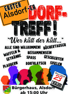 die Ortsgemeinde Alsdorf nimmt derzeit an einer sogenannten "Dorfmoderation" teil. Ziel ist es, unterschiedliche Aspekte der Lebensumstände in Alsdorf zu analysieren und auf Optimierungspotenzial zu überprüfen. Ein Aspekt ist dabei, das soziale Miteinander und die Weiterentwicklung der Angebote in der Ortsgemeinde. Bei der Diskussion in zwei Workshops, an dem interessierte Mitbürgerinnen und Mitbürger teilgenommen haben, kam der Vorschlag, einen "Dorftreff" einzurichten, wie das andere Gemeinden in der Vergangenheit bereits erfolgreich getan haben.