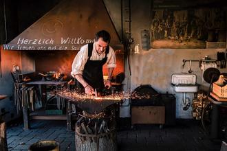 Die Schmiede lassen wieder die Funken sprühen. Sie freuen sich, den großen und kleinen Besucherinnen und Besuchern die traditionelle Handwerkskunst der Eisenbearbeitung vorzuführen. Wer sich traut, kann selbst mit anpacken und schmieden.