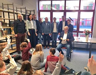 Am Welttag des Buches (23. April) hat Schulleiterin Simone Kraft allen Grund zur Freude: Nicht nur dass Landrat Dr. Peter Enders und der Erste Kreisbeigeordnete Tobias Gerhardus extra zum Vorlesen für die Klassen 5 und 6 in die Bibliothek des Freiherr-vom-Stein-Gymnasiums gekommen sind - nein es gab auch gute Nachrichten für die Bibliothek!