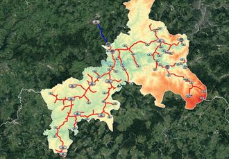 Die „Schlagadern“ der Wasserversorgung im Kreis Altenkirchen. Das Fernleitungsnetz des WKA umfasst 230 Kilometer. (Quelle: WKA)