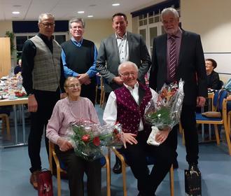 Den beiden ältesten Anwesenden, Frau Lieselotte Jünger und Herrn Kunibert Schneider wurde von Jürgen Giehl ein Blumenstrauß und ein Heimatjahrbuch 2020 überreicht.
