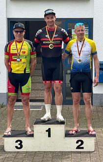 Bei der gestrigen LV Meisterschaft im Einzelzeitfahren konnte Nico Matuschak den Titel holen. Die leichten Anstiege haben sich ganz schön gezogen, aber die Beine waren gut heute resümierte Nico Matuschak nach dem Rennen. Zwei weitere Medalien gab es für den RSC Betzdorf. Bei den Master 3, wo Frank Stühn einen dritten Platz einfuhr. Auch der zuletzt so erfolgreiche Steffen Heintz konnte aufs Podium fahren. Seine Zeit reichte für die Bronze Medaille bei den Master 4. Eine grandiose Zeit legte in der Hauptklasse Julius Buttenschön hin. 31 Minuten brauchte er für die 22 Kilometer. Das bedeutet ein Schnitt von 44 km/h. Damit kam er auf den 6 Platz.