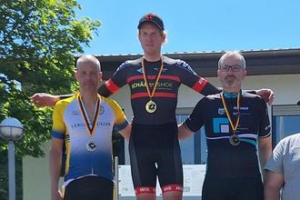 Tobias Schütz (Mitte) ist der beste Masters-Zeitfahrer in Rheinland-Pfalz
