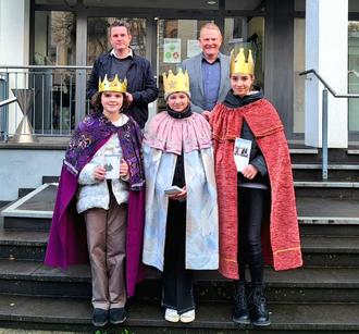 Stadtbürgermeister Benjamin Geldsetzer und Bürgermeister Bernd Brato begrüßten die Sternsinger im Betzdorfer Rathaus.