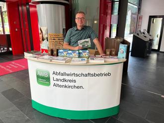 Am 05.07.2022 war es nach längerer Zeit endlich wieder so weit. Der Abfallwirtschaftsbetrieb Landkreis Altenkirchen eröffnete seinen Infostand zur Abfallberatung im S-Forum, Betzdorf. Nach der „Corona-Zwangspause“ stellten sich dort von 09.00 - 14.00 Uhr die beiden Abfallberater des AWB Julia Hundhausen und Stefan Jung allen Fragen der Bürgerinnen und Bürger rund um das Thema Abfall.