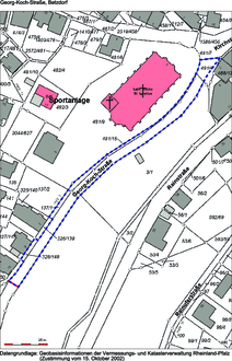 Gemarkung Betzdorf, Flur 1, Flurstück 481/15, 491/4 (teilweise), sowie Flur 7, Flurstück 496/13 (teilweise), sowie Flur 9, Flurstück 137/1 und 328/148 = Georg-Koch-Straße.