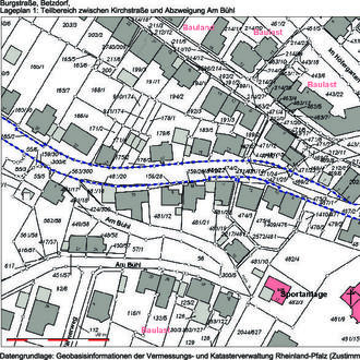 Gemarkung Betzdorf, Flur 1, Flurstück 156/3, 156/5, 158/11, 158/13, 159/23,159/24, 159/25, 159/29, 159/30, 159/31, 160/5, 160/7, 467/1, 469/2, 471/14, 471/25, 475/3, 481/20, 753/19, 753/21, 753/23, 753/25, 753/27, 753/29, 753/31, 753/33, 753/35, 753/37, 753/39, 753/41, 753/43, 753/47, 753/49, 753/51, 753/53, 1493/753, 2409/156, sowie Flur 9, Flurstück 17/1, 54/1, und 294/6, = Burgstraße.