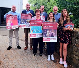 Neues Programm der VHS-Theatergemeinde und Musikgemeinde e.V. präsentiert (v.l.n.r.): Ingo Janson (Rhenag), Sascha Eckhardt (Sparkasse Westerwald-Sieg), Marita Ganser (Beigeordnete Stadt Betzdorf), Michael Nassauer (Musikgemeinde Betzdorf-Kirchen e.V.), Christina Heimlich (VHS-Theatergemeinde), Bürgermeister Bernd Brato und Virginia Schäfer (VHS-Theatergemeinde).