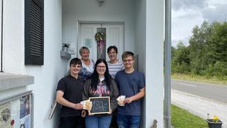 Ihre Abschlussfeier konnten kürzlich die SchülerInnen der Abschlussklasse 10 der Westerwaldschule Gebhardshain begehen. Nach den Feierlichkeiten blieb von dem vorhandenen Budget noch einiges an Geld übrig und man entschied sich, dieses an den Tierschutzverein für den Kreis Altenkirchen zu spenden. Die Schüler hatten sich ganz bewusst und speziell für die Tierheimtiere in Weitefeld entschieden und somit kam ein toller Betrag in Höhe von 180 Euro zusammen. Die Spendenübergabe erfolgte nun an der Tierauffangstation durch die Schüler (vordere Reihe von links) James Schneider, Leonie Wernke und Leo Brenner an die Tierschützer Andrea Morche (rechts) und Amneris Bürschel, die sich herzlich für die tolle Aktion bedankten.