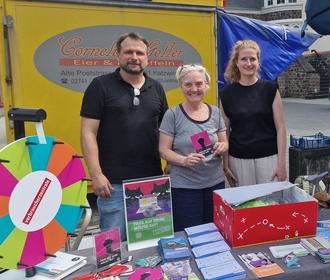 Außerdem stand Frau Röttig als Beraterin der Verbraucherzentrale für individuelle Fragen zur Verfügung – dieses Angebot nahmen einige Bürgerinnen und Bürger gerne in Anspruch und suchten den Stand gezielt auf. Mit einem Quiz am Glücksrad konnten Interessierte ihr Wissen testen, in dem sie Fragen aus dem Verbraucheralltag beantworten und kleine Preise mit nach Hause nehmen konnten.