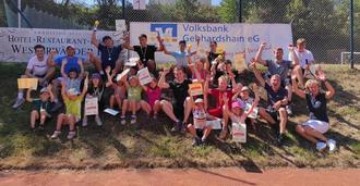 Großer Jubel nach der Tennis-Siegerehrung auf der Anlage in Gebhardshain.
