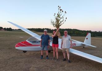 Im Verlauf des Aufenthalts absolvierte Flugschülerin Louisa den für die Pilotenlizenz erforderlichen Streckenflug mit einem Soloflug in der Vereins-ASK13 von Elchingen nach Donauwörth und zurück. Einen Tag später konnte Flugschülerin Vanessa mit dem gleichen Segler ihre ersten drei Alleinflüge in Elchingen sicher hinter sich bringen. Mangels Wasser am Startplatz fiel die Taufe zwar etwas trocken aus, aber der riesige „Thermikstrauß“ konnte sich sehen lassen.