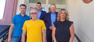 V.l.n.r.: Peter Dietershagen (stellv. Bauhofleitung), Martin Schneider (Bauhof), Stadbürgermeister Benjamin Geldsetzer, Bürgemeister Bernd Brato und Monika Stinner (Leitung Kita Zwergennest).