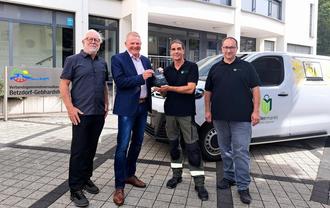Gestern bestellt – heute geliefert! V.l.n.r.: Wendelin Abresch (Vorstand Wäller Markt), Bürger-meister Bernd Brato, Uwe Giesa (Fahrer Wäller Markt) und Thorsten Bienemann (Logistikleiter Wäller Markt).