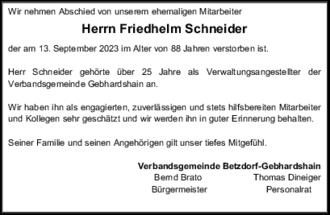 der am 13. September 2023 im Alter von 88 Jahren verstorben ist.