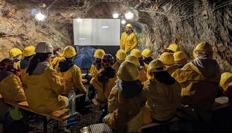 Die Kreisjugendpflege bot in Zusammenarbeit mit medien.rlp und der Grube Bindweide dieses einzigartige Aktionskino an. Nach einer kurzen Führung durch die Ausstellung des Museums wurden wasserdichte Mäntel übergeworfen, Helme aufgesetzt und Proviant geschultert. So gut ausgerüstet und zusätzlich in warmer Kleidung verpackt, die Temperatur in der Pulverkammer betrug unter 10° C, stieg die kleine Gruppe in die Grubenbahn und wurde ins Bergwerk gefahren. Dort erwartete die Kinder ein spannendes Filmvergnügen, in dem, thematisch passend, Steine eine wichtige Rolle spielten. Im Anschluß gab es noch eine gemeinsame Bastelaktion. Alle Teilnehmenden waren sich einig, ein außergewöhnliches Kinoerlebnis gehabt zu haben.