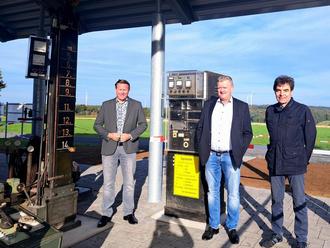 Freuen sich über die Fertigstellung der Überdachung mit weiteren Exponaten (v.l.n.r.): Joachim Brenner (Erster Beigeordneter), Bernd Mudersbach (Fa. Bernd Mudersbach), Martin Schäfer (Leiter Bauamt)