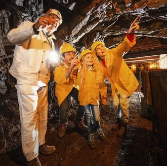 Die Bergwerksführer begrüßen gerne die Besucher zu einer Führung durch die Untertagewelt der Grube Bindweide. Ein spannendes und abenteuerliches Erlebnis – besonders für Familien und genau passend für eine tolle Aktivität in den Herbstferien