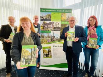 Neue Verantwortlichkeit, altbewährte Qualität: Auf 320 Seiten lädt das frisch aus der Druckerei gekommene Heimat-Jahrbuch des Kreises Altenkirchen wieder zum Blättern und Schmökern, zum Nachdenken, Diskutieren und natürlich Schmunzeln ein. Der 66. Jahrgang (für 2023) ist dabei erstmals vom Kreis Altenkirchen bzw. der Kreisvolkshochschule herausgegeben worden und nicht mehr vom Kreis-Heimatverein. Diese Änderung „hinter den Kulissen“ wird den Leserinnen und Lesern allerdings kaum auffallen – und das ist auch gut so. Vorgestellt wurde das neue Heimat-Jahrbuch jetzt in der Kreisverwaltung von Landrat Dr. Peter Enders, Bernd Kohnen und Melanie Henn (beide KVHS) sowie Dr. Kirsten Seelbach und Joachim Weger (beide Heimatverein, Text- und Bildredaktion). Das Titelbild ist diesmal eine herbstliche Aufnahme des Eingangs zum Schlosshof in Schönstein.