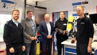V.l.n.r.: Markus Beichler (stellv. Wehrleiter der Verbandsgemeinde), Joachim Brenner (Hauptamtl. Beigeordneter), Bürgermeister Bernd Brato, Björn Koch und Tobias Beichler (beide Leiter Atemschutz).