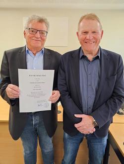 Bürgermeister Bernd Brato (rechts) graturlierte Dieter Lichtenthäler (links) zum zehnjährigen Jubiläum.